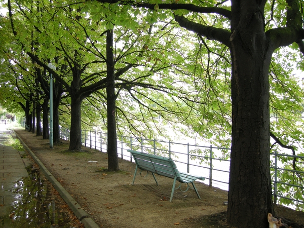 這夜我就在學長家掛單寄宿。隔日起床,吃完早餐告別學長之後,我便獨自散步到了鐵塔下,沿著河岸閒逛到比哈肯(Pont de Bir Hakeim)橋,這座橋上是地鐵六號線,下面是汽車到與腳踏車道,不過我來這邊是因為這座橋是天鵝散步林蔭小徑(Allee des Cygnes)。這條小徑是塞納河上座長方形的小島,另一端是格納爾(Pont de Grenelle)橋,橋下有小號的自由女神像。小徑綠蔭遮人,有許多人在慢跑,徑旁的椅子大概是巴黎市內最適合乘涼、讀書的地點之一吧!