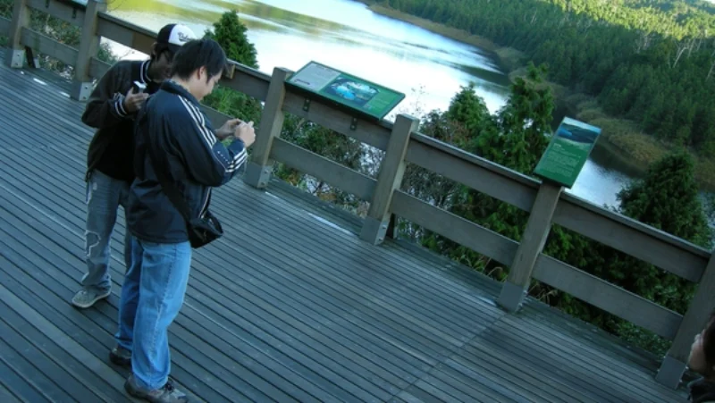 第二天一早的行程是翠峰湖,前一天沒加到油,猶豫了許久最後還是覺得成行。不過我們拖太晚了,並沒有看到日出。在湖邊照了許多相,並在彥鈞的堅持下,走完環湖步道。由於早餐也是有時限的,一路上都在趕路。雖然說是環湖步道,但是大部分的路程都看不到湖,一直到快到另外一端路口時才豁然開朗,可以俯視湖景,相當漂亮。