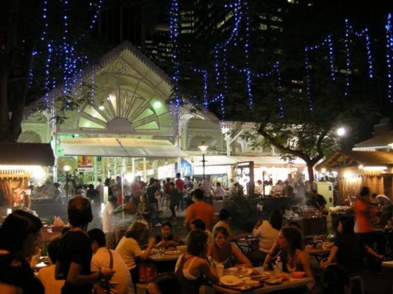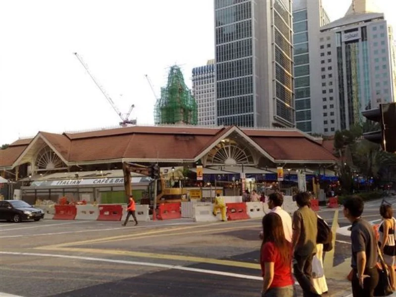 老巴剎在Rafflles Place這站附近,這個地方是新加坡最重要的商業區,但下班之後就沒啥人,當然下班的人潮是相當恐怖的。由於我過度緊張的個性,老早就到了,於是先出去逛逛。老巴剎就是比較老的巴剎,有特別整修過,所以長得比較輝煌一點,於是乎東西就比一般巴剎貴了很多。外面馬路正在整修,照起來真醜。
