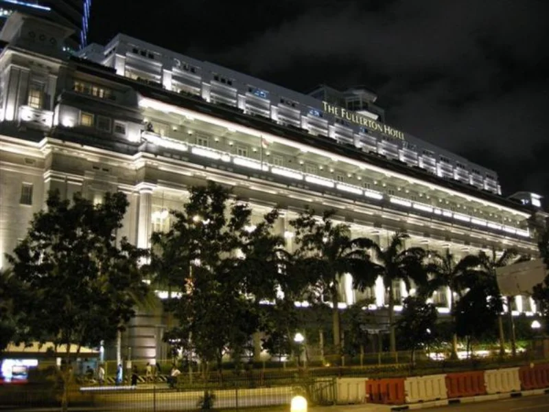 魚尾獅跟 Fullerton Hotel合照。