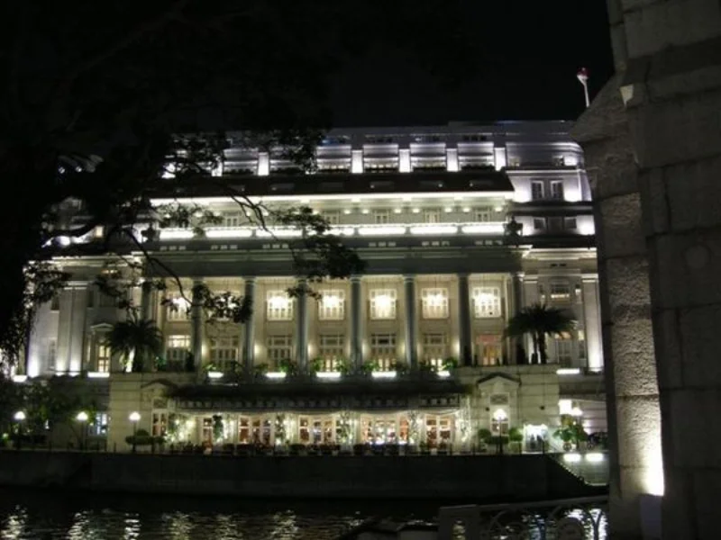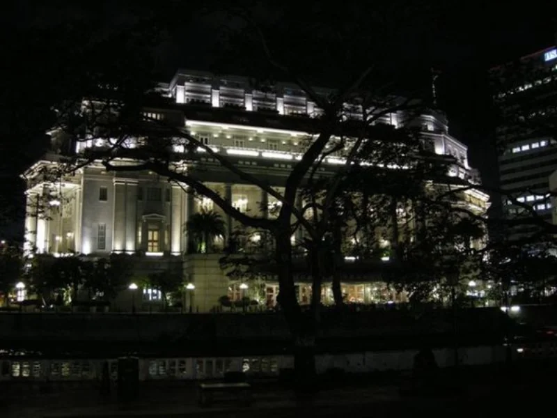 吃飽之後,告別Wendy姐,剩下一群人散步去克拉馬頭。路上遇見上次來有吃到的Fullerton Hotel,晚上照別有一番風味