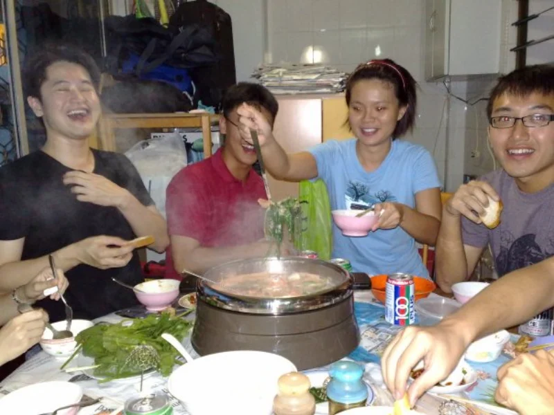 不久就被招呼進餐廳吃飯。火鍋主要是以海鮮組成,但除了火鍋之外還有咖哩雞。我最喜歡的新加坡食物除了Laksa之外就是咖哩雞,痛痛快快的吃了許多。Cheryl爸沒有跟我們一起吃,但相當熱心的不斷走進廚房幫我們加料。