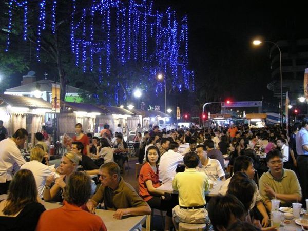 老巴剎在Rafflles Place這站附近,這個地方是新加坡最重要的商業區,但下班之後就沒啥人,當然下班的人潮是相當恐怖的。由於我過度緊張的個性,老早就到了,於是先出去逛逛。老巴剎就是比較老的巴剎,有特別整修過,所以長得比較輝煌一點,於是乎東西就比一般巴剎貴了很多。外面馬路正在整修,照起來真醜。