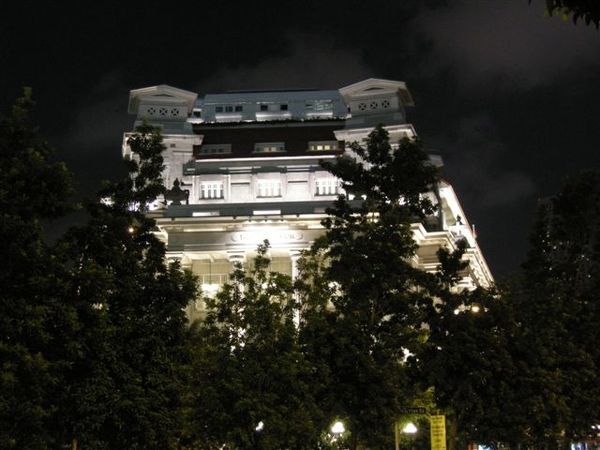 吃飽之後,告別Wendy姐,剩下一群人散步去克拉馬頭。路上遇見上次來有吃到的Fullerton Hotel,晚上照別有一番風味