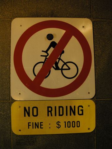 騎腳踏車一次罰S$1000。新加坡果然可怕。