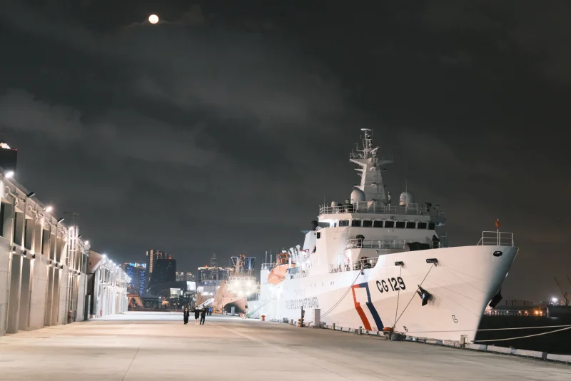 After dinner, we strolled along the waterfront toward Great Harbor Bridge. Along the way, we passed several Coast Guard vessels, including the ROCS Kaohsiung and the ROCS Anping. At the far end stood the New Ocean Research 1. The sea breeze was wonderfully refreshing the whole way, the path was wide and well-lit—it felt ideal for a night run, though I wonder if it gets too hot in summer.