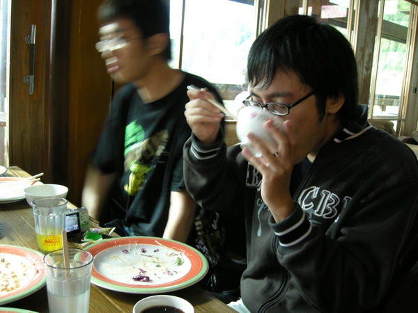 我在下午五點半左右抵達羅東車站,一上車就換我開。王彥鈞是很慶幸終於換手,雖然我不知道之前楊昇儒是怎麼開的,但實在不想冒險。第一晚住宿太平山莊,由於晚餐時限的關係,可說是趕路上山,但相當不幸的是山路起霧,車速相當慢(但還是相當可怕)。最後過了時限才到,所幸山莊人員有幫我們留晚餐,而且還是相當豐盛。太平山的天氣相當涼爽,脫離城市的喧囂,一時間覺得自己輕靈許多。