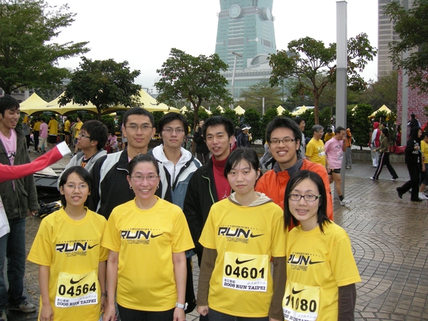 今年是第二次參加Nike Run,這次同樣把教授拉出來運動,為此前一整個禮拜都在練習。教授練得很勤,其他人就...。這次實驗室參加的人有栗子、紀忠毅、武治中、小朋友、文芝,教授和我自己,男生都跑9km女生跑5km。9km的衣服是粉紅色的,栗子因此穿去年的衣服。其他實驗室參加的有育誠、嘉銘、禹安跟188。
