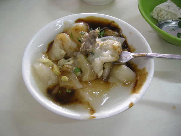 另外有名的就是北斗肉圓吧!最著名的那家叫做肉圓生。不過我常經過北斗,就是沒停下來吃,原因是從小到大我就只鍾情一家肉圓,那就是溪畔肉圓。溪畔肉圓在田尾附近,我外婆家在田尾,那邊的親戚都只喜歡吃這一家。這次回田尾,不顧已經跟阿嬤約好要回家吃飯,硬是又吃了四顆肉圓。