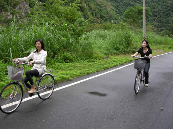 玉山國家公園南安遊客中心有免費的腳踏車借用服務,每個人都借了一台,騎往瀑布。