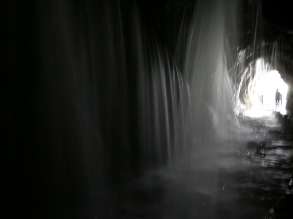 步道底就是水廉洞了,水深及膝,清澈冰涼