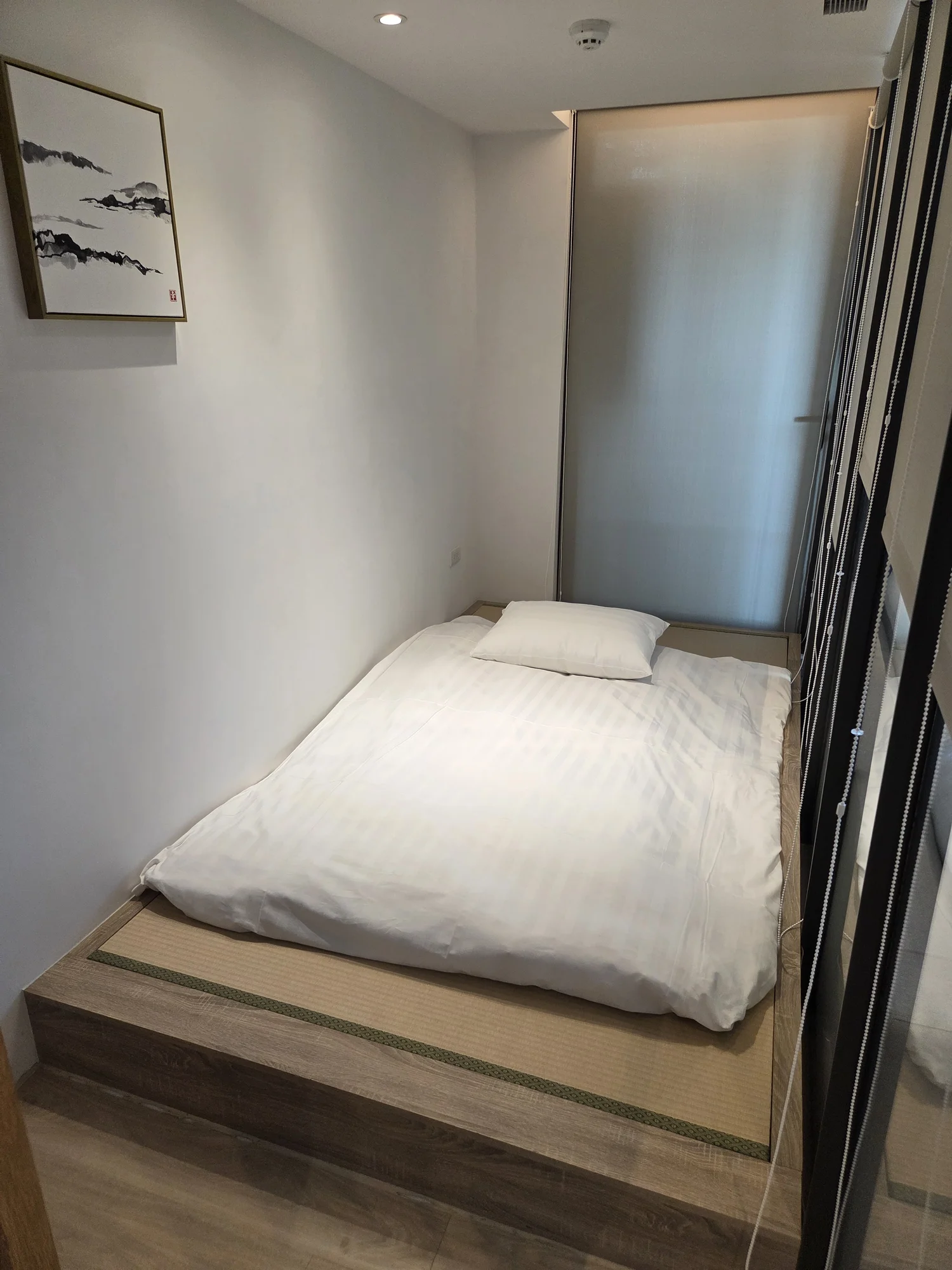 感覺比我現在租的房子還要大,坪效也不錯。沙發後面有一個放了單人床鋪的和式空間,我本想晚上自己睡這裡,但被女兒強佔,不過她待沒多久就說會怕怕,要三個人一起睡臥室。