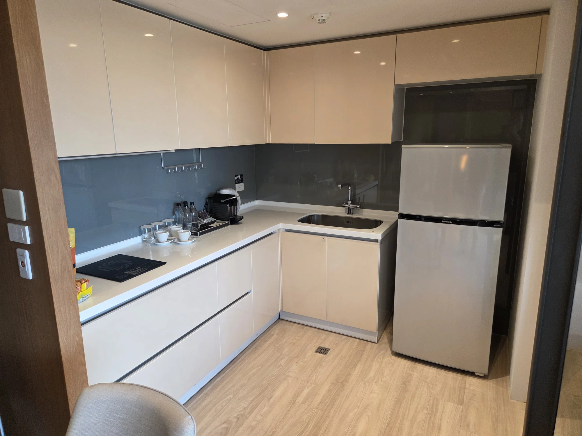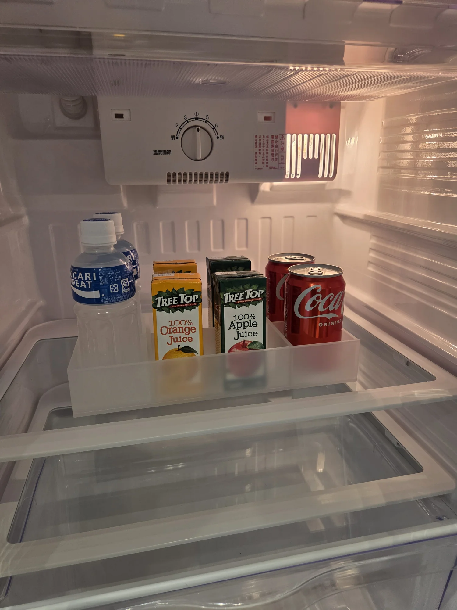 廚房有 Nespresso Original 系列膠囊咖啡機,冰箱內有果汁、寶礦力與可樂,十分大方。