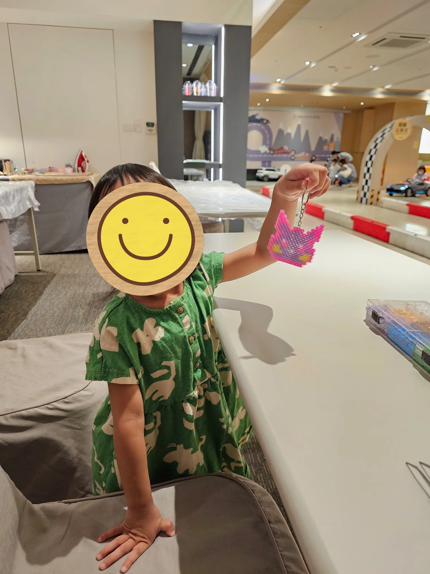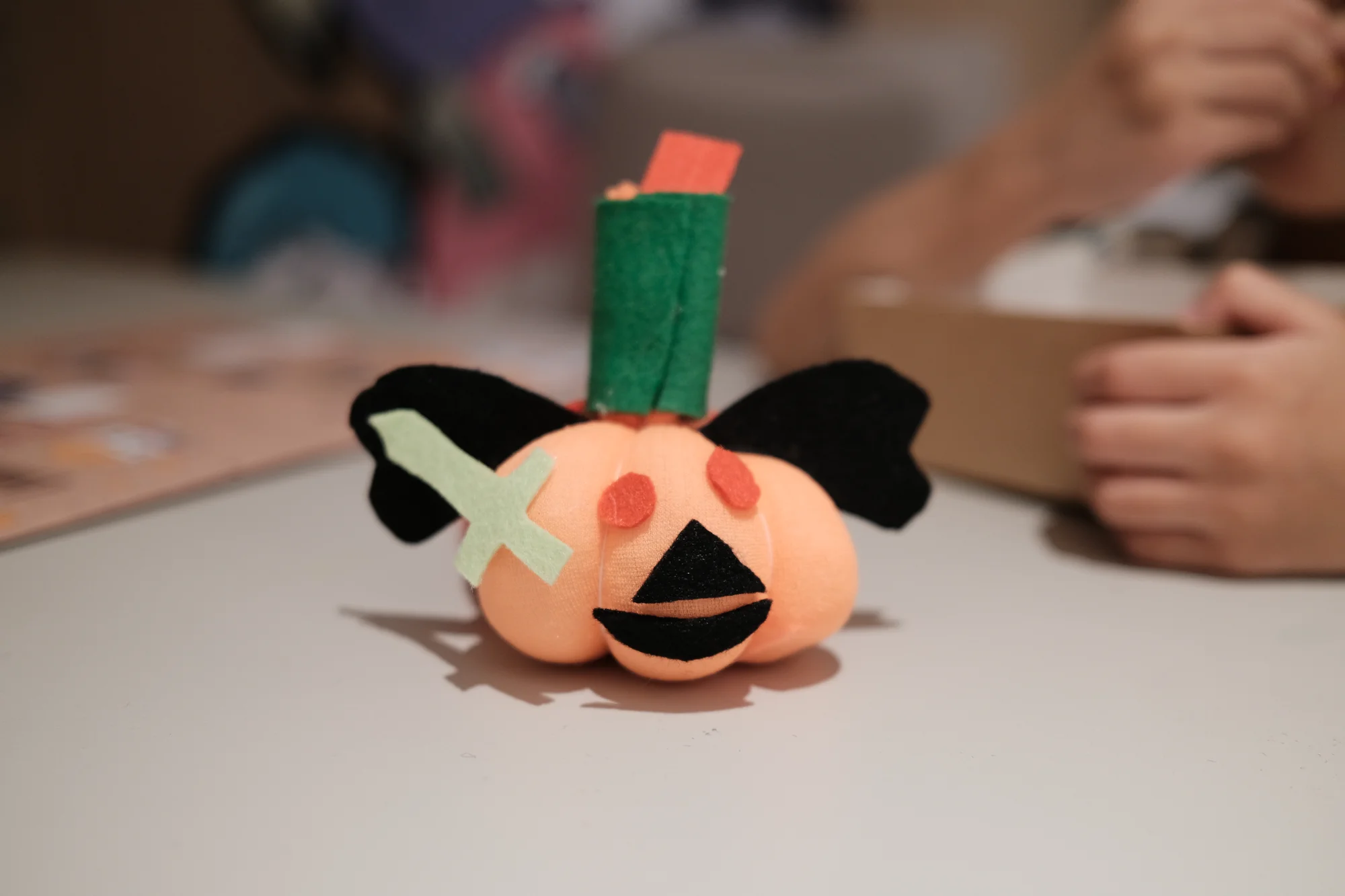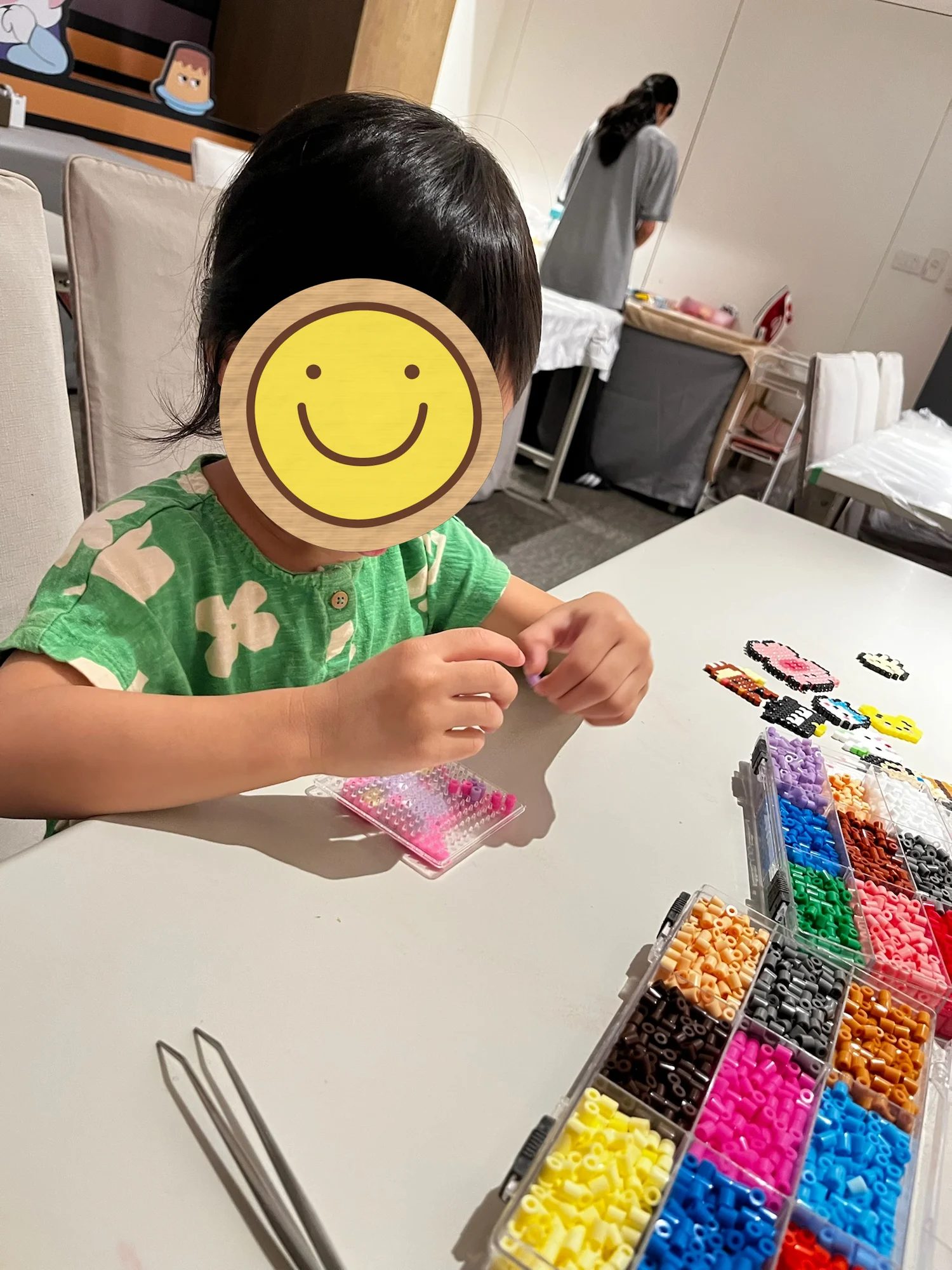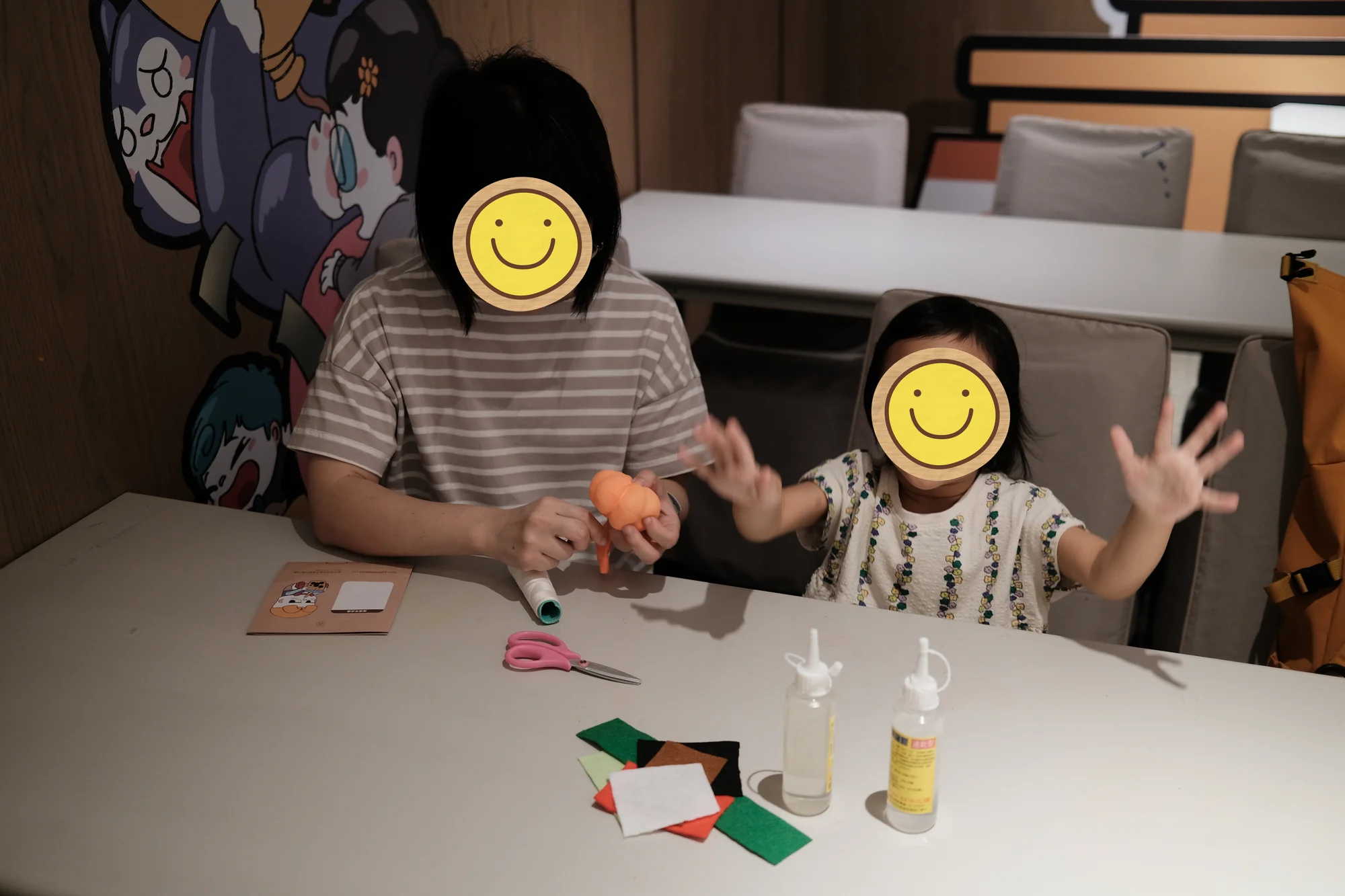 我們先辦理入住手續,不過下午四點才能拿房卡。手續辦好之後可以先使用設施,我們先到地下室一樓(GF)玩,有手作活動跟電動汽車。女兒對汽車完全沒有興趣,只想要手作,做了一個填塞棉花的南瓜武士。